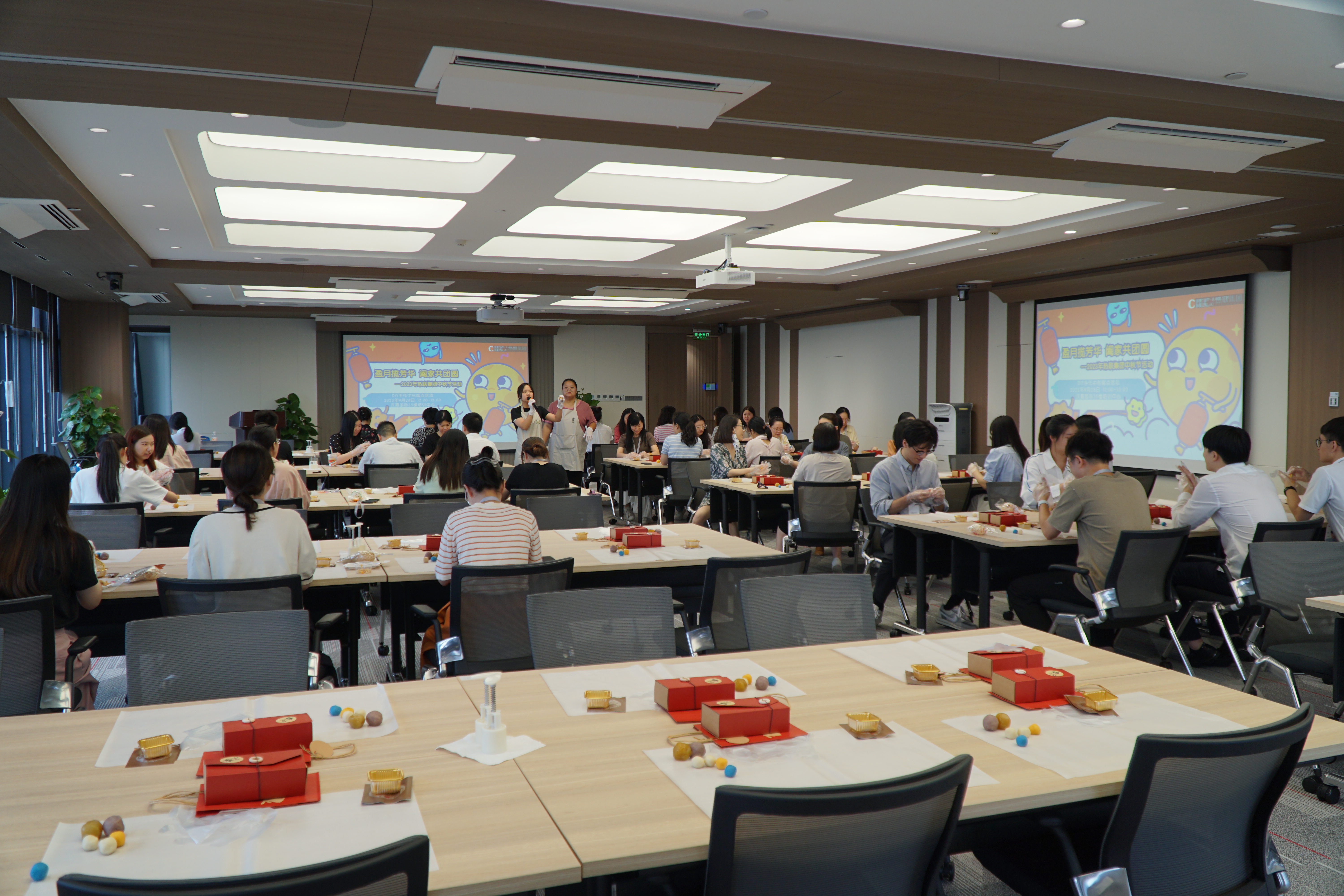 同時,在漢嘉國際35樓培訓中心和泛海國際A9樓培訓室還特別設置了DIY中秋糕點活動,共有150多名員工參加了本次活動。在手作師傅的指導下,很多第一次嘗試制作糕點的員工,都順利做出了一個個精美飽滿的糕點。